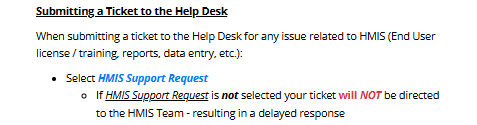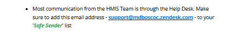 My agency needs to start using HMIS. What is the process? Please CLICK HERE to contact the HMIS Help Desk. Related to HMIS New HMIS Project Related articles New HMIS End Users: How to Request Training & Gain Access to the MD BoS HMIS HMIS Workflow: PATH MD BoS HMIS Assessments MD BoS HMIS Updates & Improvements - 3.9.25 MD BoS HMIS Privacy Policy & Procedures