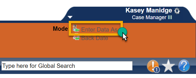 - Before searching for a client or entering client information, select the correct provider to Enter Data As.